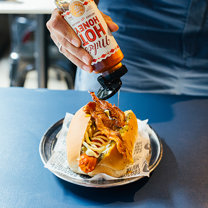 Doce, defumado e com a quantidade certa de pimenta — este sanduíche de bagel com bacon, ovo e queijo ganha um toque ousado do Brooklyn com um fio de Mel...